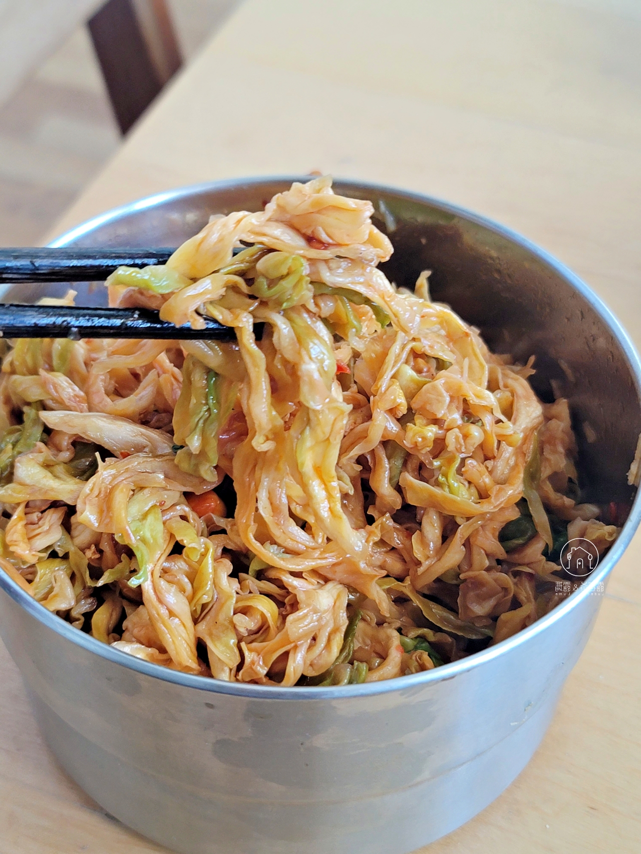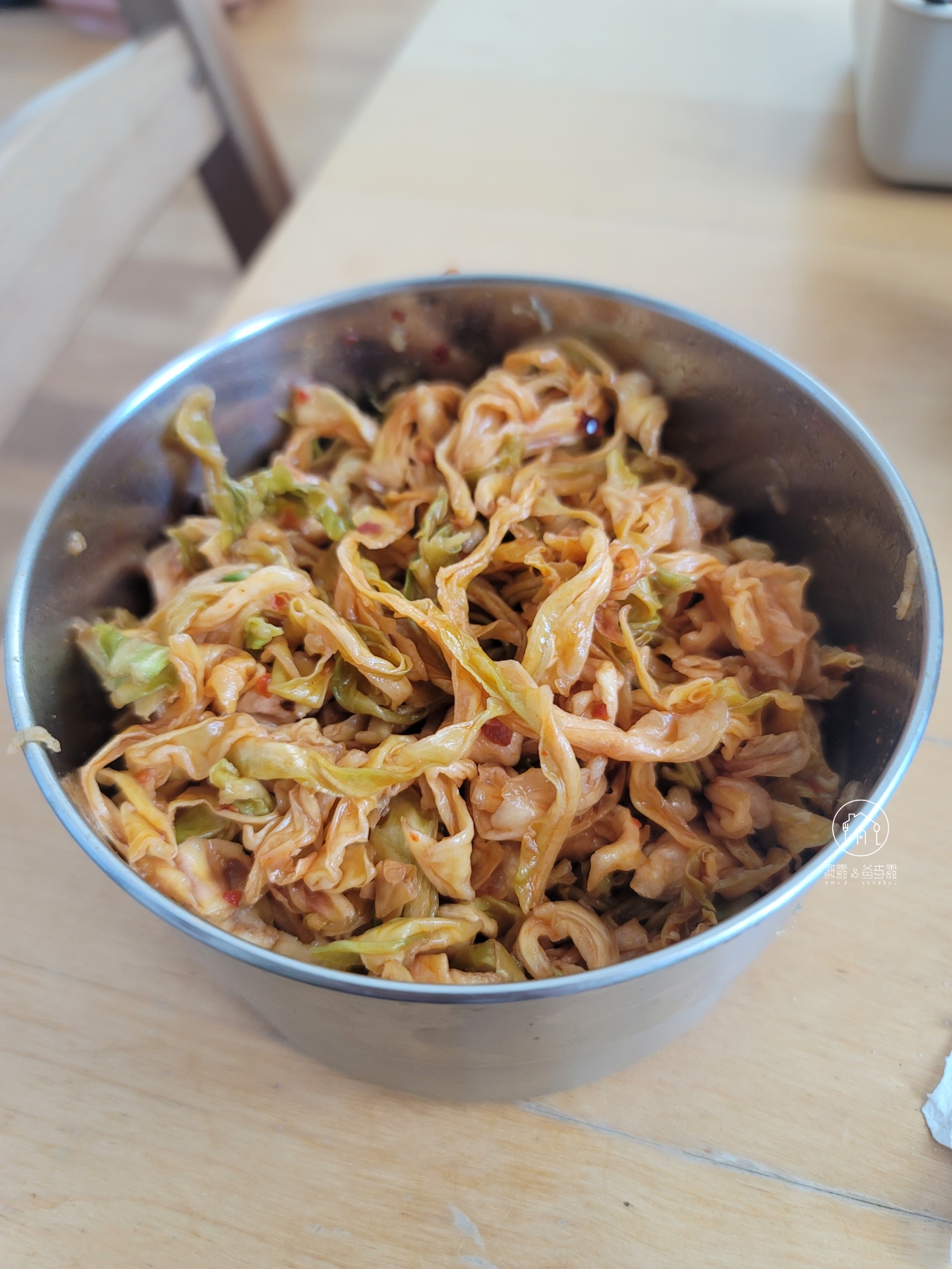 高 麗菜也是同樣的作法,指使不需要過多的湯汁醃蓋,翻拌均勻即可。