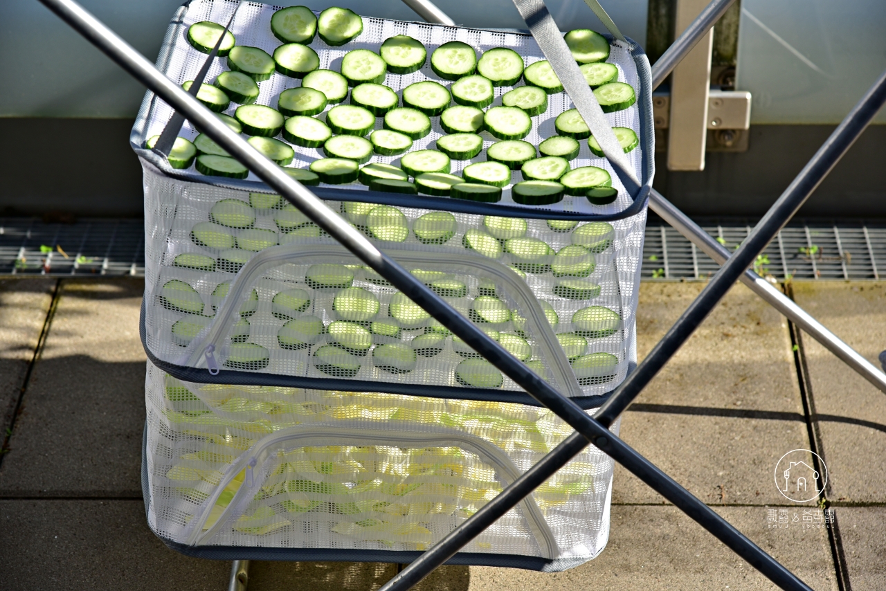 高麗菜乾偏有嚼勁,小黃瓜乾則脆口爽香,兩者都非常適合夏天食慾不佳時來上一盤,還多了一種在異地自給自足的樂趣。