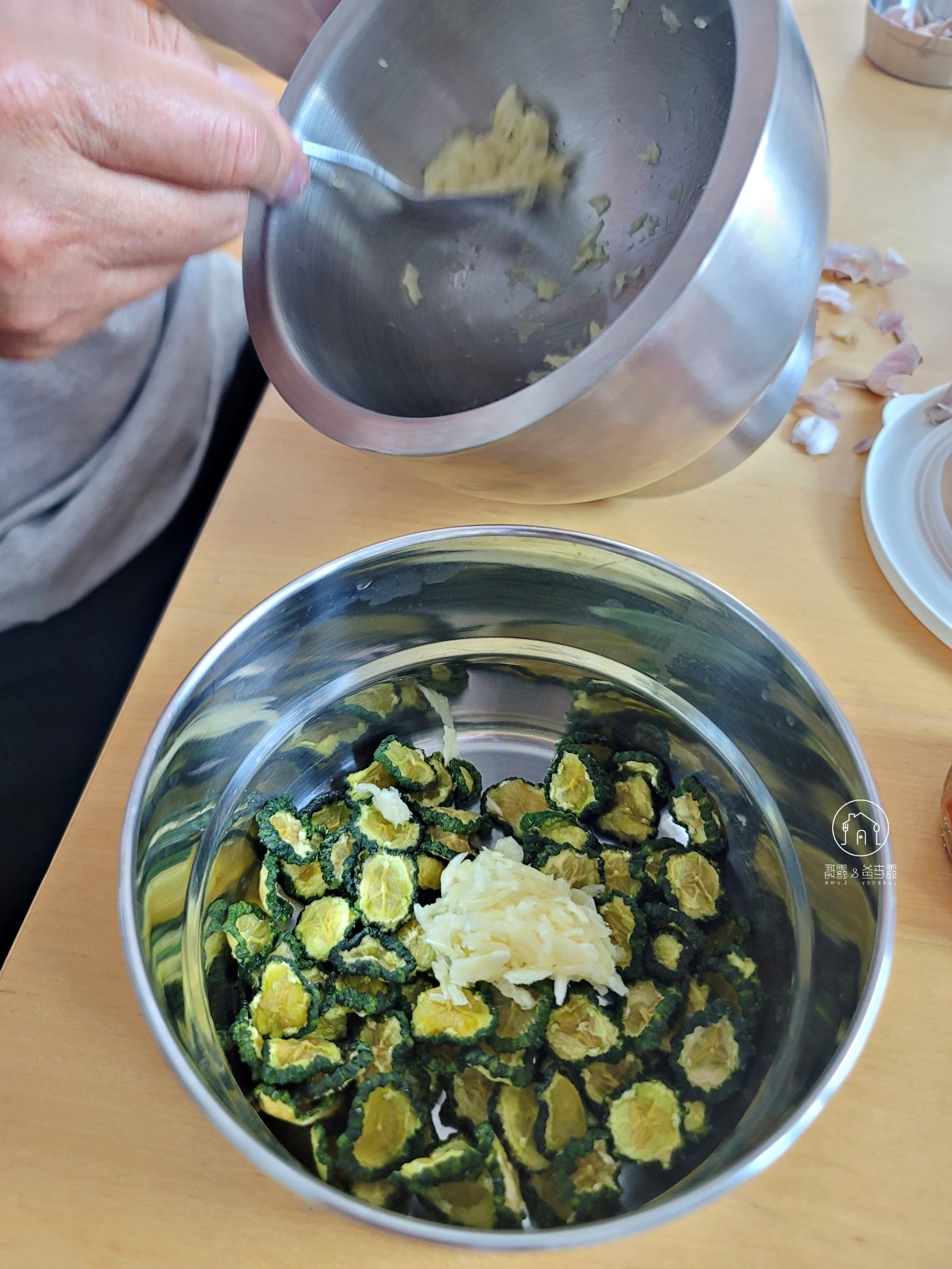- 再用熱水沖燙(不是泡喔),快速瀝乾。