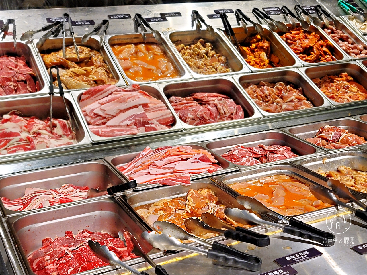 烤肉區:牛肉、豬肉、雞肉種類超過十種,醃製與原味任你選。