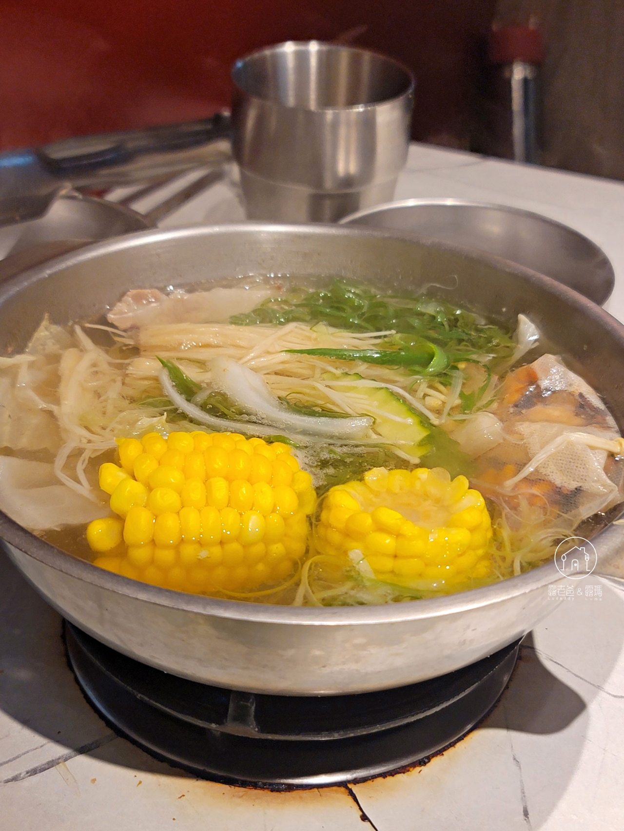 我們點的藥膳鍋底,味道不錯且耐煮,烤肉吃膩可以喝點湯均衡一下,吃一會火鍋再繼續烤肉真的很棒!