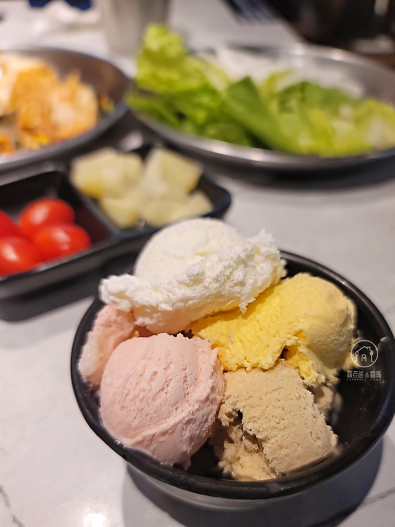 除了烤肉選項豐富,還有火鍋料、生菜沙拉、熟食、炸物、小菜、飲品、冰淇淋等全部自助吃到飽。
