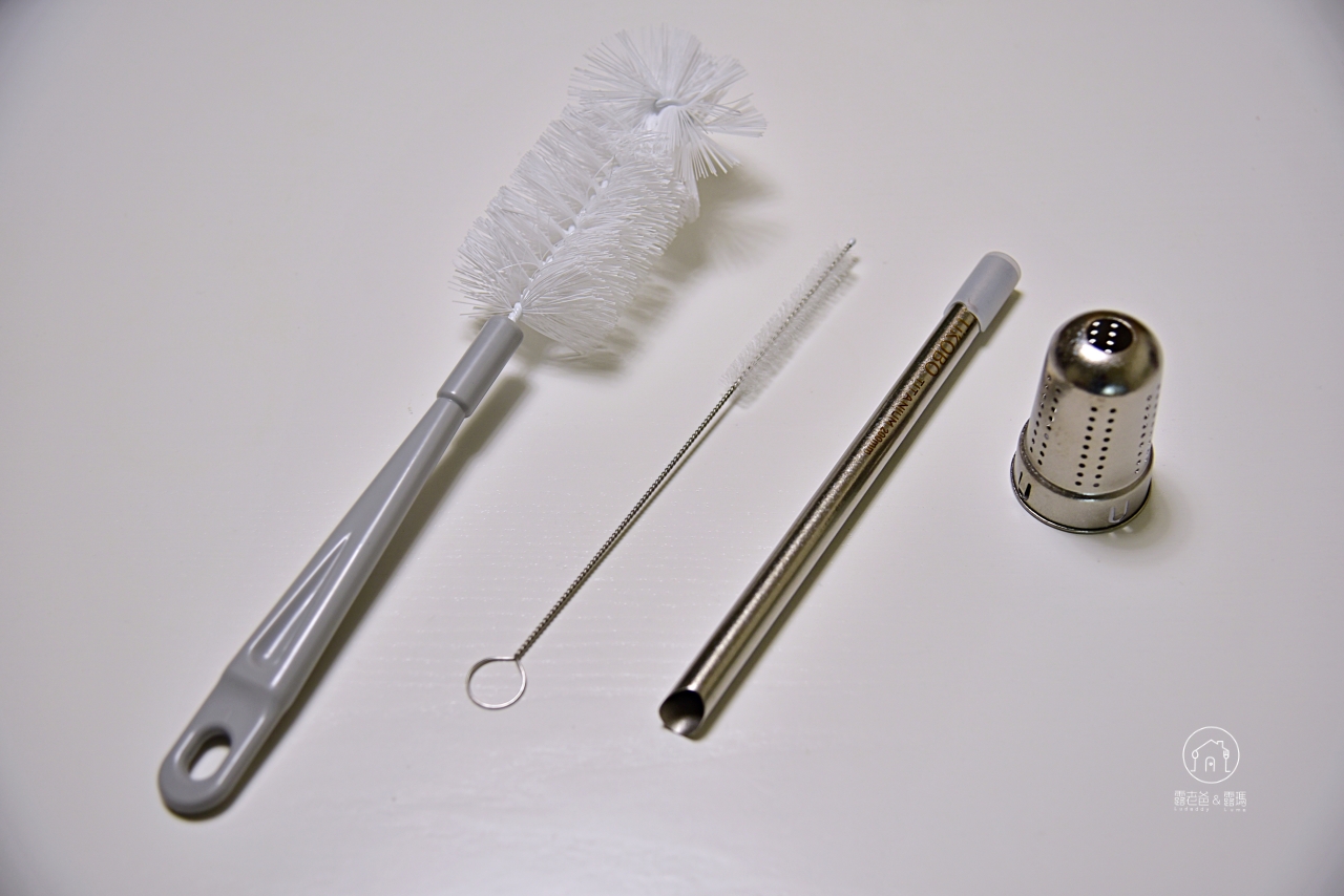 內建吸管、可拆式茶隔、不鏽鋼吸管、吸管刷與清潔刷,貼心設計讓使用與清潔更加便利。