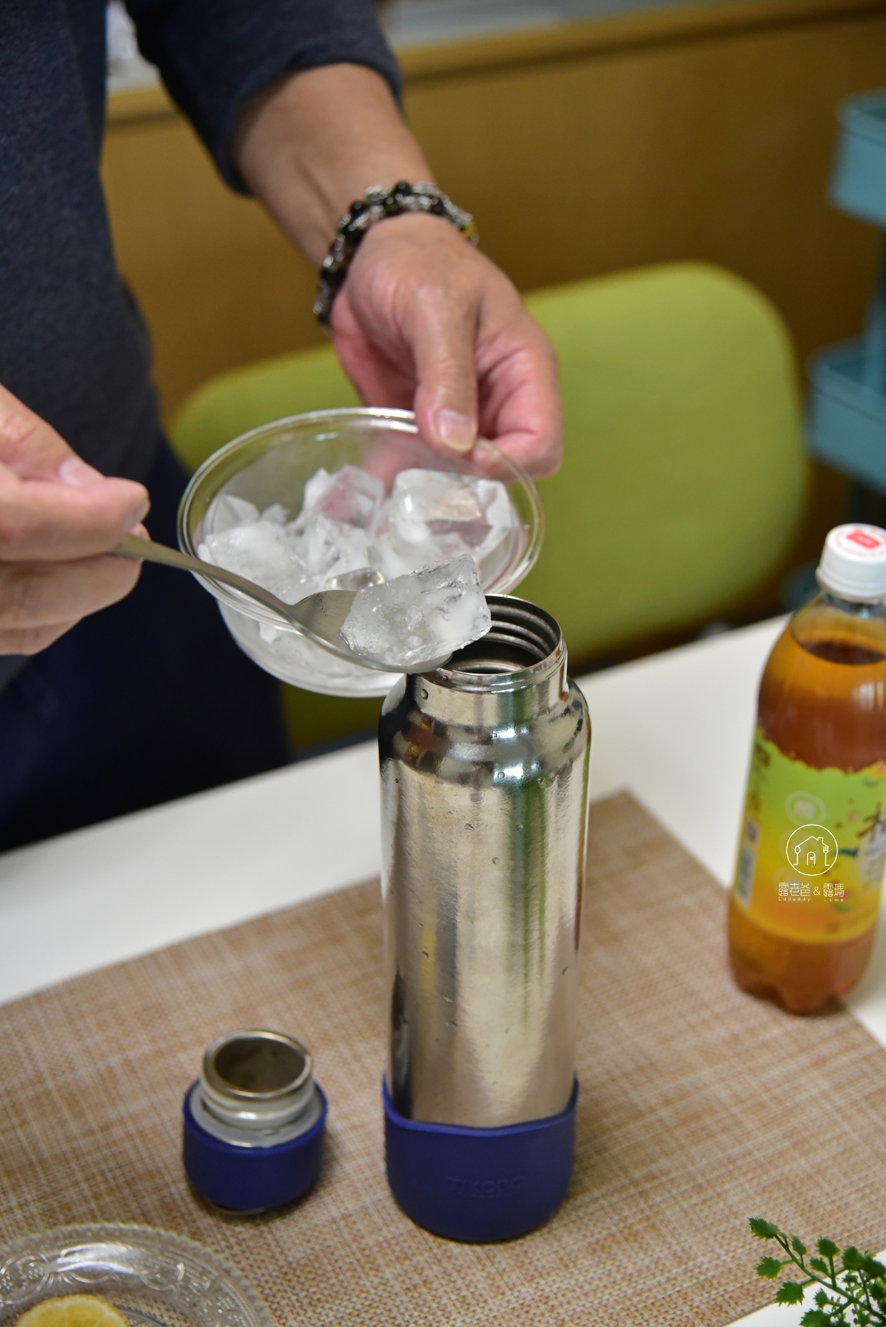 也可以靜置一會,柳橙的香味會更明顯,過兩小時開瓶看,哇!冰塊都還在,保冰效果超好!